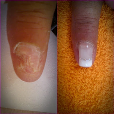 Após um acidente de trabalho esta cliente ficou com o seu dedo danificado desta forma, o gel é uma opção para minimizar os danos causados.